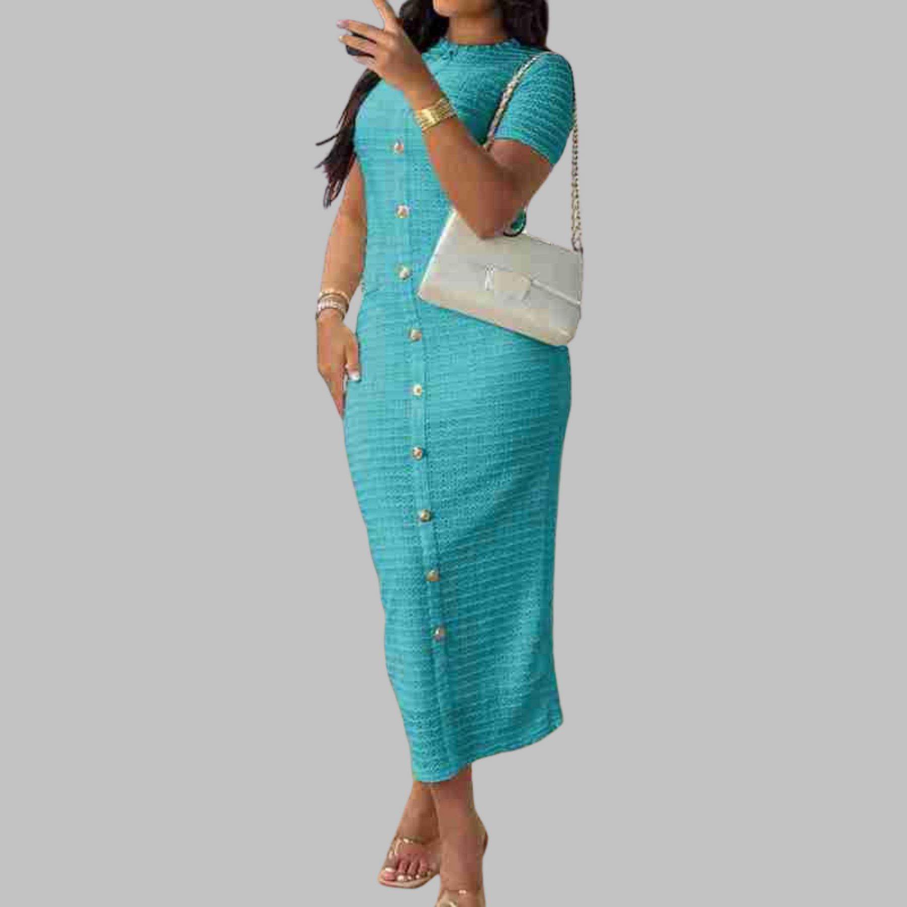 RACHEL™ - Elegant Round Neck Fake Button Dress
